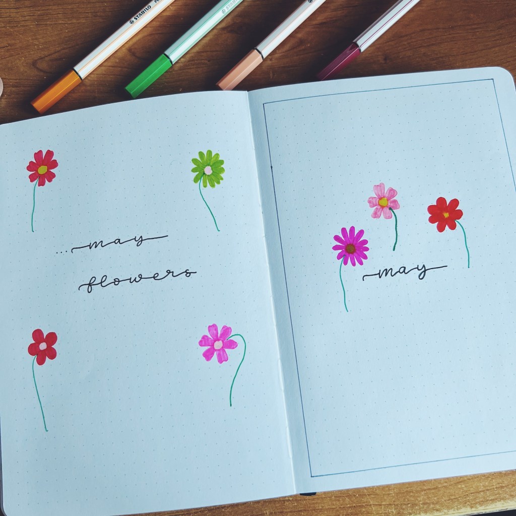 As I mentioned previously, if you saw my previous post about my April Bullet Journal Setup, then you will know that setup included the beginning of the quote ‘April showers bring May flowers’ and so of course, I continued that for this particular quote page.