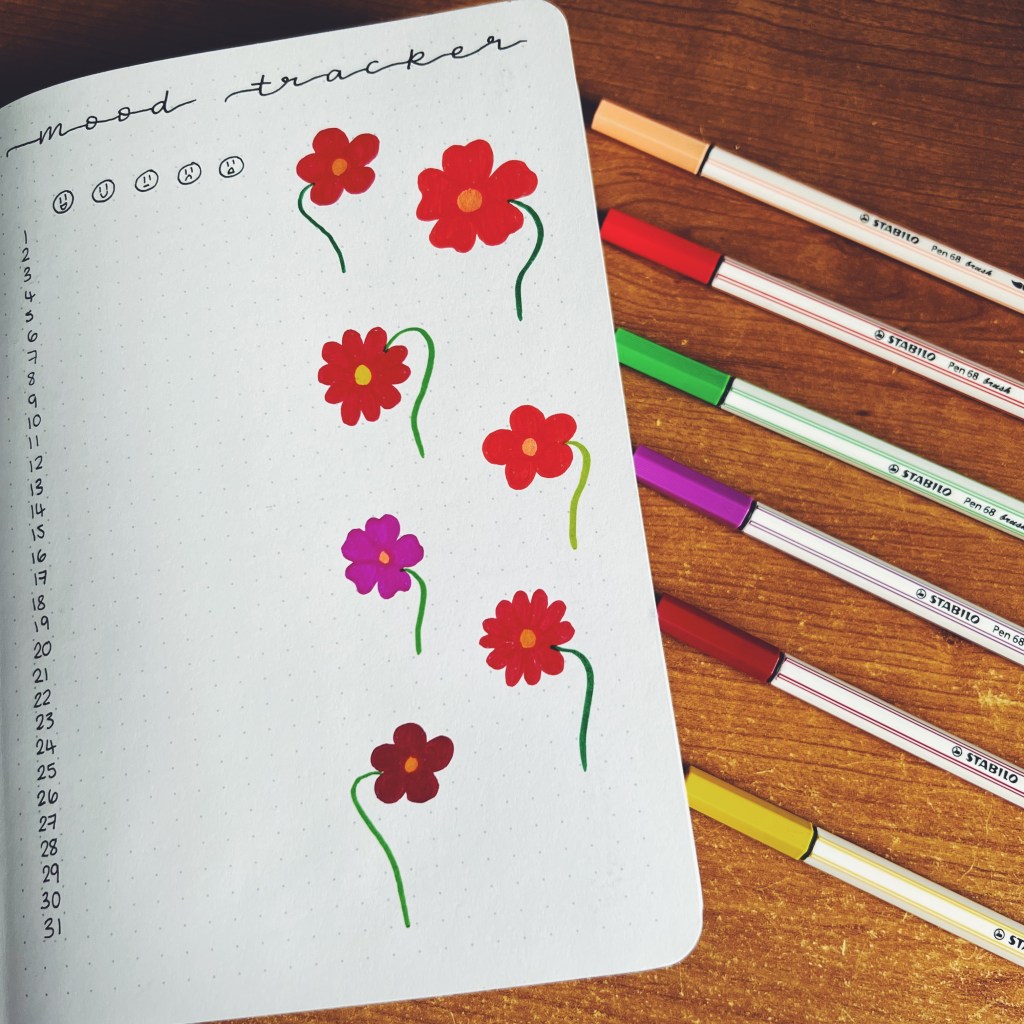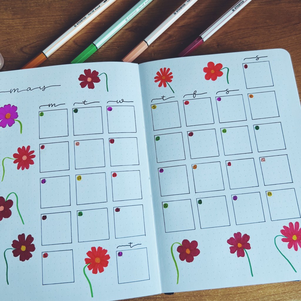 Let’s express the elephant in the room first. Yes, I know I made a mistake. I completely forgot there are 31 days in May instead of 30. Once I realised that, I had already doodled in the flower. I therefore had to add the extra square after but that’s okay. I always laugh at these mistakes.