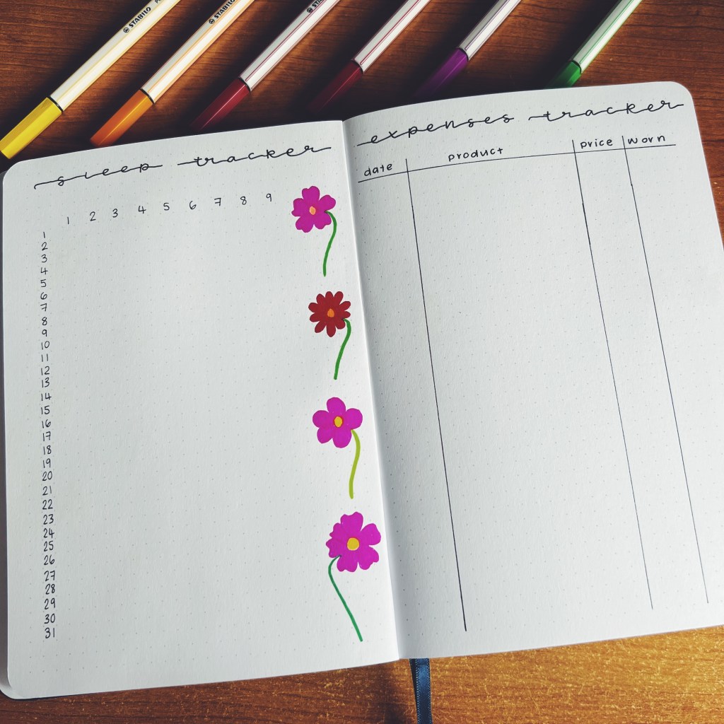 For my sleep tracker, I again went with the same layout as last month as it works really well for me. It’s a lot easier to set up than the time slept layout, which involves showing a visual way of the hours you slept in terms of the time.