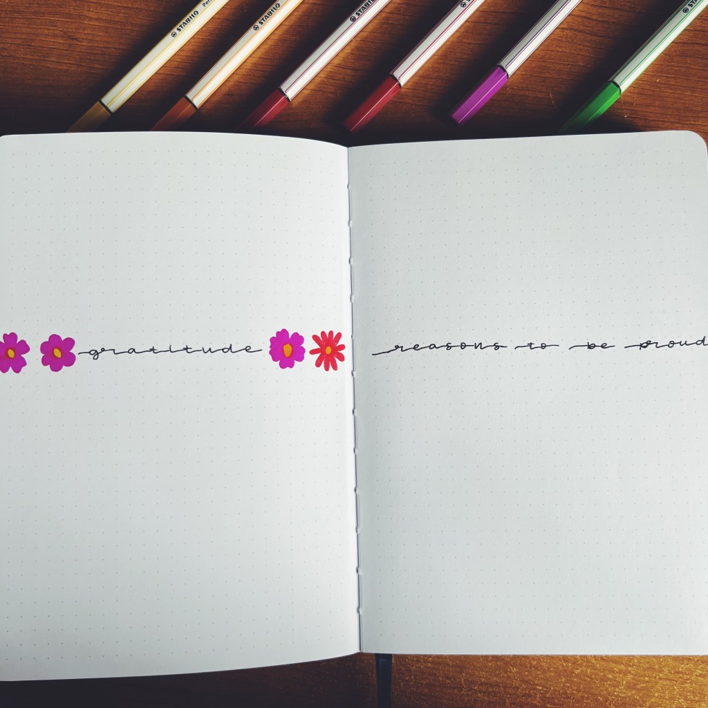 My gratitude and reasons to be proud spreads are the exact same as last month. They both work extremely well for me and I appreciate having both of these spreads in my Bullet Journal.