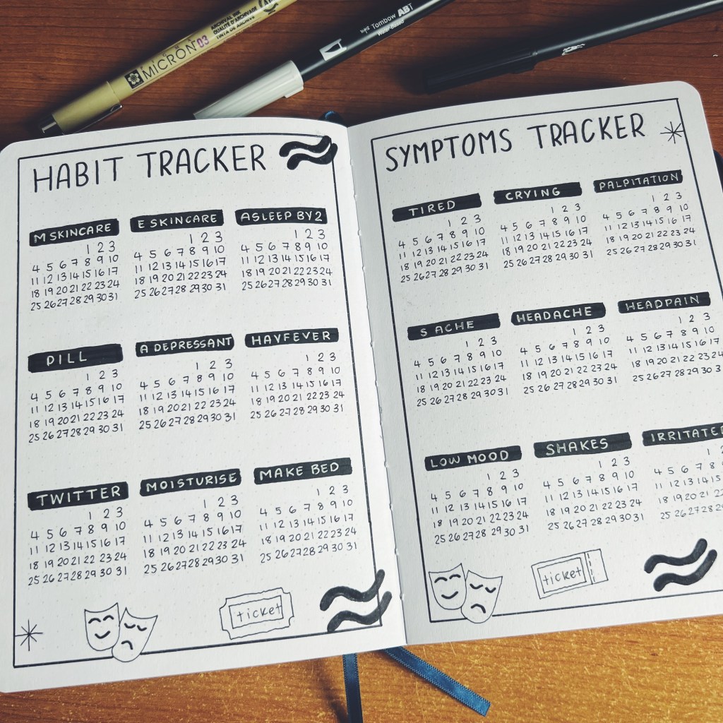 For my habit and symptoms tracker, I decided to keep the layouts the same as last month as these worked really well for me. The only thing I changed was a couple of the habits and symptoms I’m tracking.