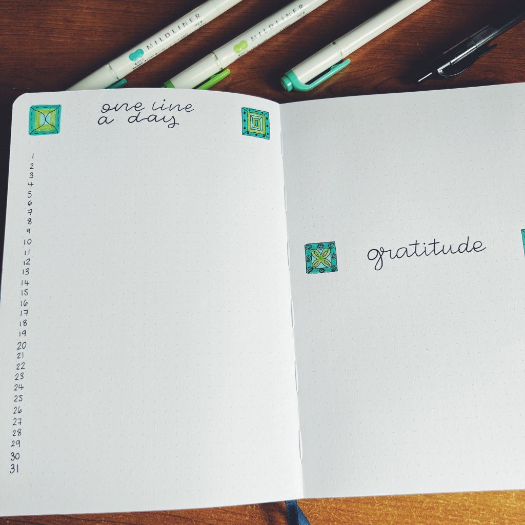 For my gratitude spread, I went back to the previous layout that worked well for me for so long. I am looking forward to using this spread this month.