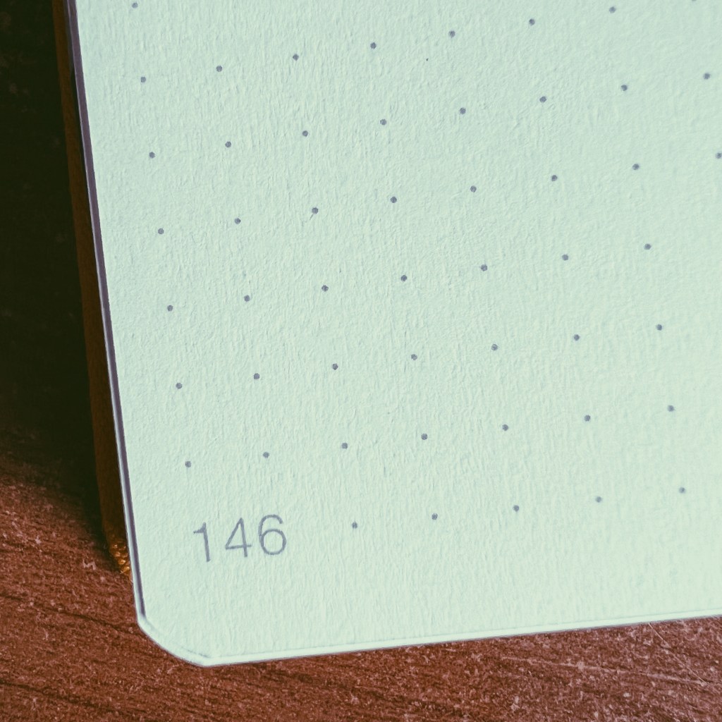 In terms of the paper itself, I would say it’s an off white colour. It’s not pure white, but it’s also not cream either. I think ivory is possibly a good way of describing it. The dots are not too dark and are fairly small, which I really like but it all depends on everyone’s preferences with that. The paper is a dream to write on as well. It’s really smooth but it also has that bit of grit or texture.