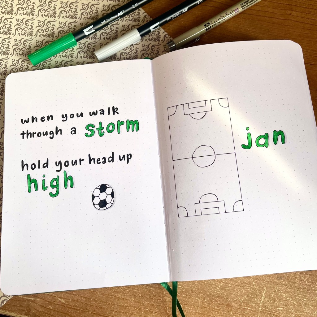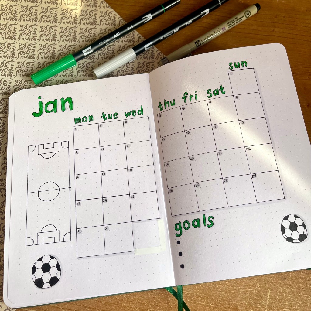 Today’s post, as you can probably guess, is going to be my Bullet Journal Setup for January. I decided to go for a football theme as it is probably my favourite sport. I would say this setup is very minimal as well so it feels like a real fresh start.
