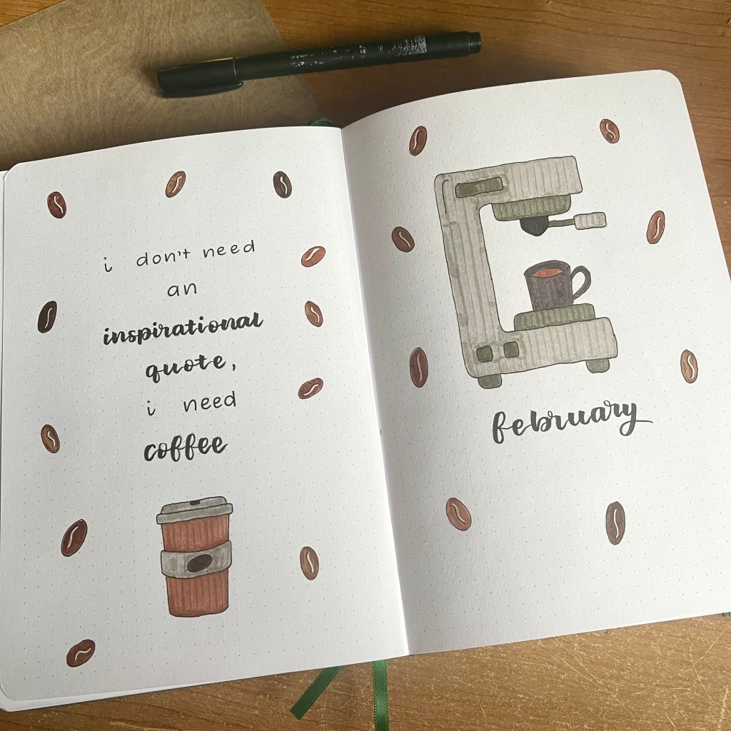 Can we talk about the quote I chose for this month? It makes me laugh every time I look at it. I included a coffee cup doodle as well and I really like how both pages look.