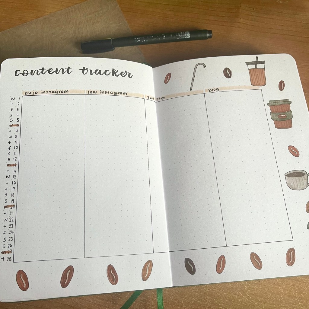 Here are some more new spreads. Again, I used to have these on my Notion page. I really like checking the statistics on my blog, not in an obsessive some kind of way, but more so to ensure that the engagement is consistent. I have included this in my Bullet Journal before, so it’s more of a reintroduction rather than an introduction.