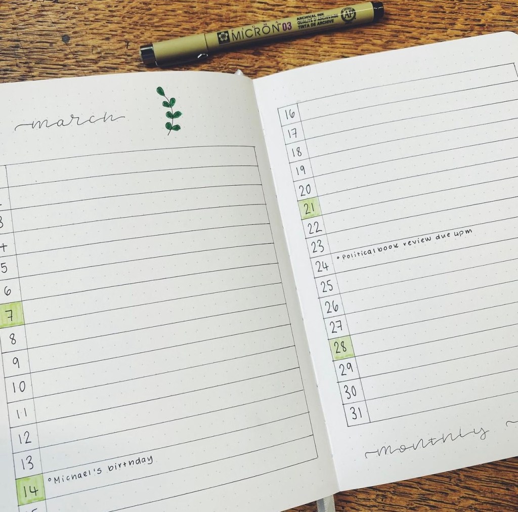 Welcome to another blog post. Today’s post is going to be about Bullet Journals, specifically monthly spreads. Monthly spreads are a focal point of the Bullet Journal System and there are a variety of layouts that you can do to suit your needs. Here are five that I have used in my Bullet Journal previously.
