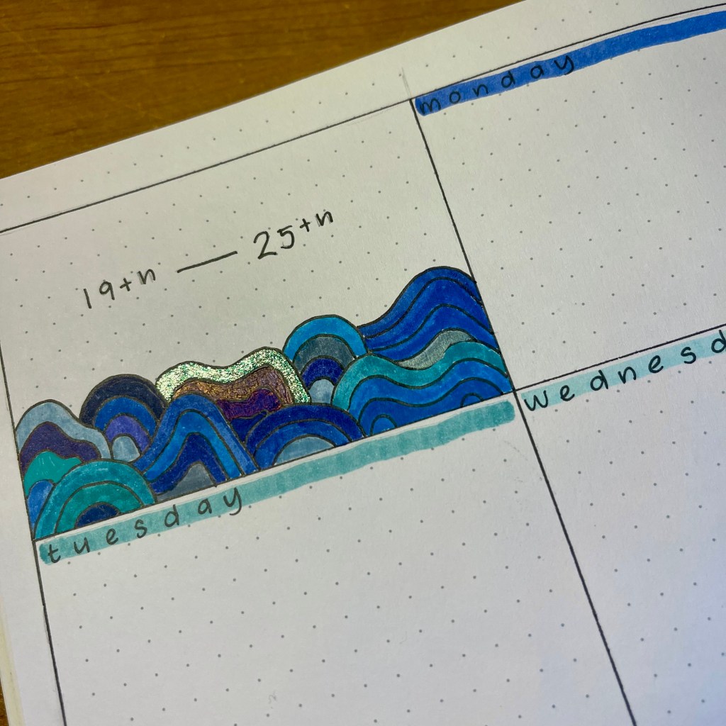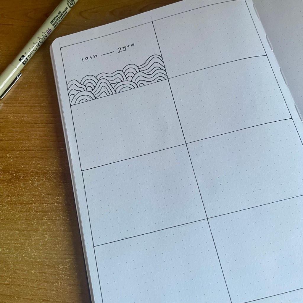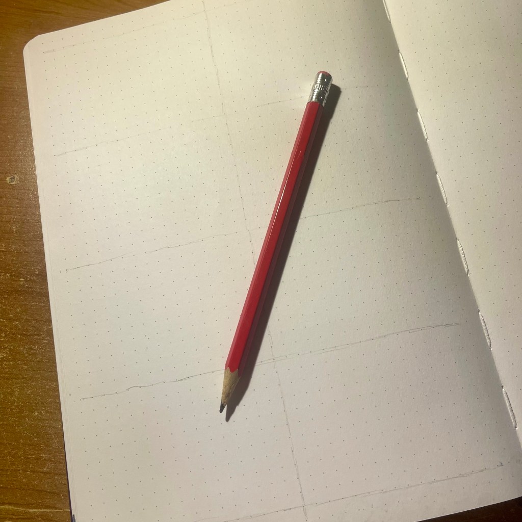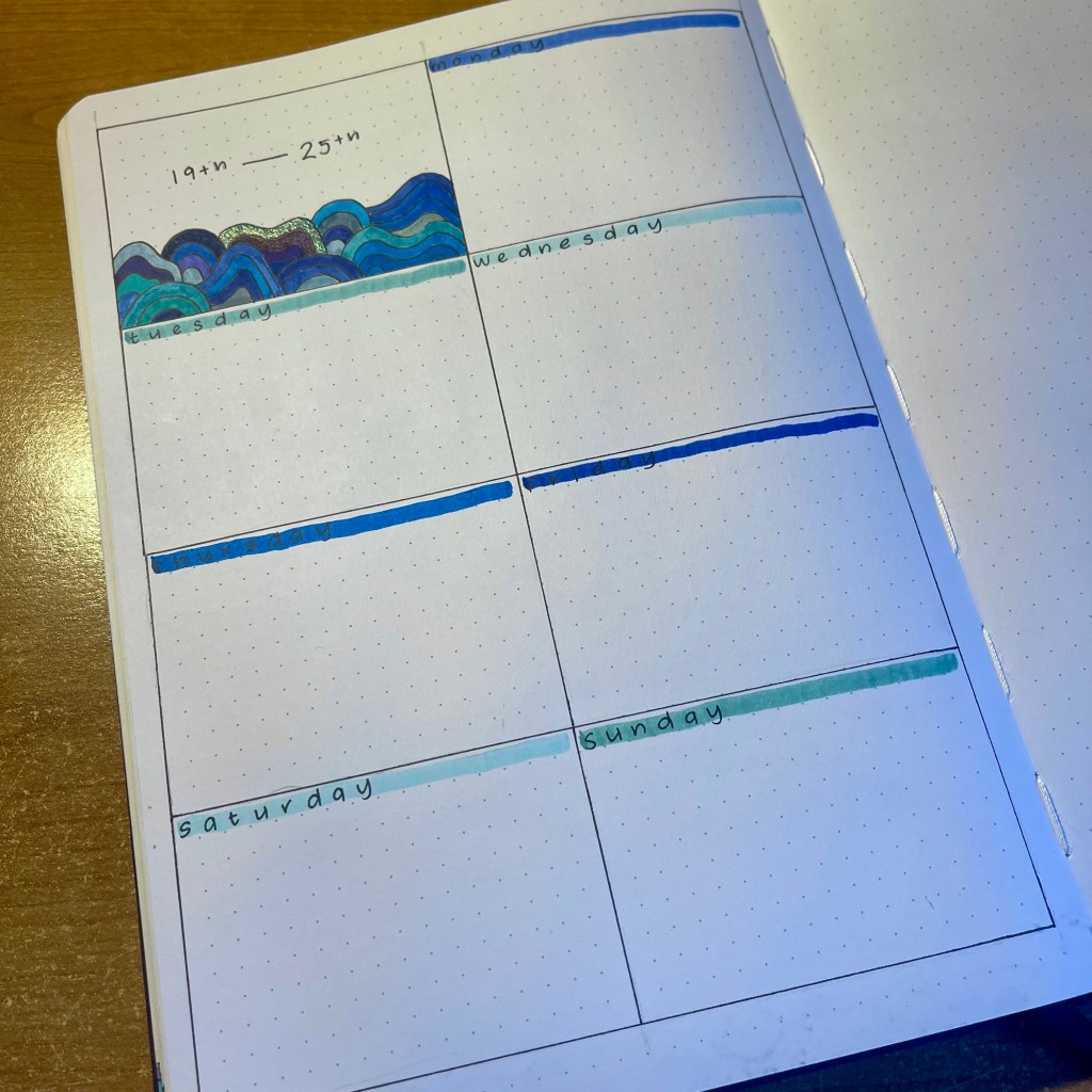 First things first, I start up by sectioning out the page in pencil. This is so I don’t make any mistakes when having sections for each day of the week.