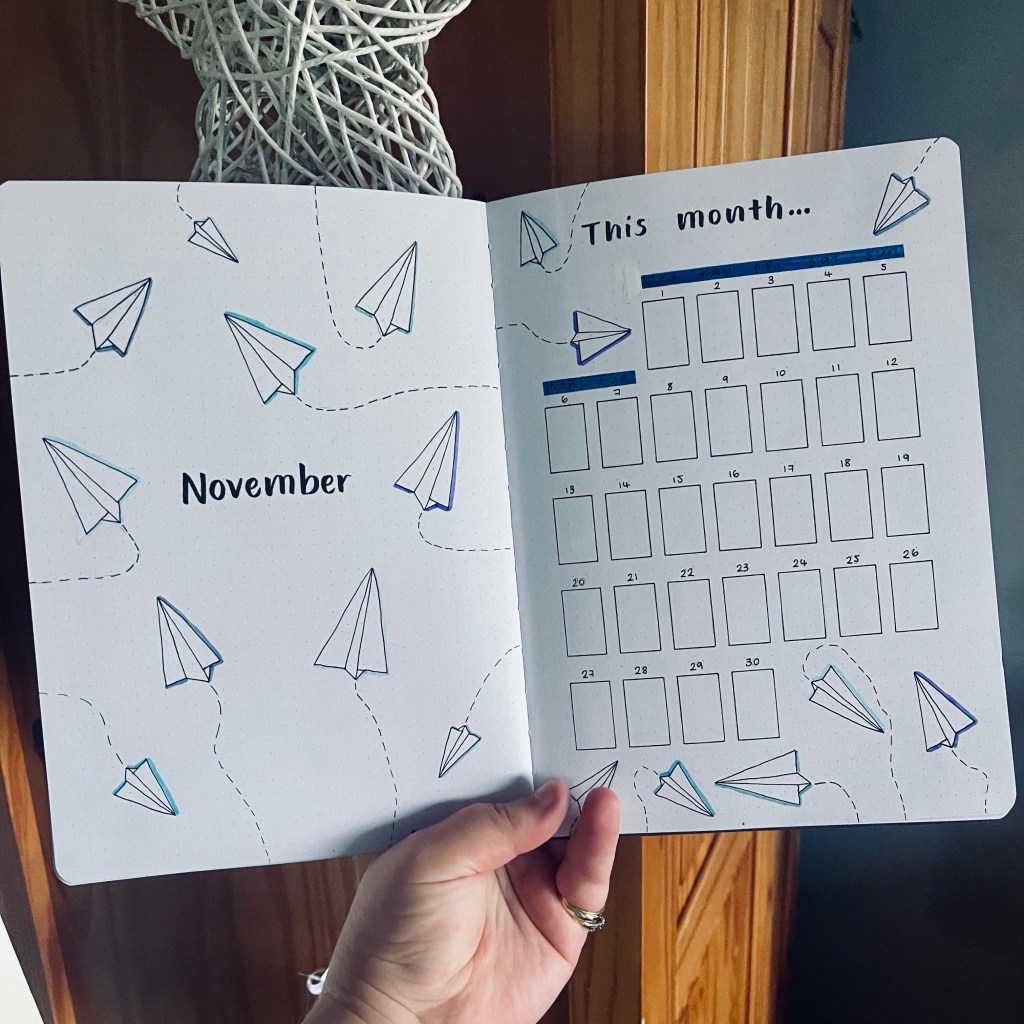 Welcome to another blog post. I can’t quite believe we’re in the last couple of months of 2023 now. Time is very much flying by! Today’s post is my bullet journal setup for November. I decided to go for a paper airplanes theme and I really adore the way it turned out. I used various shades of blue throughout and a simple brush letter font throughout and I think it’s all come together beautifully!