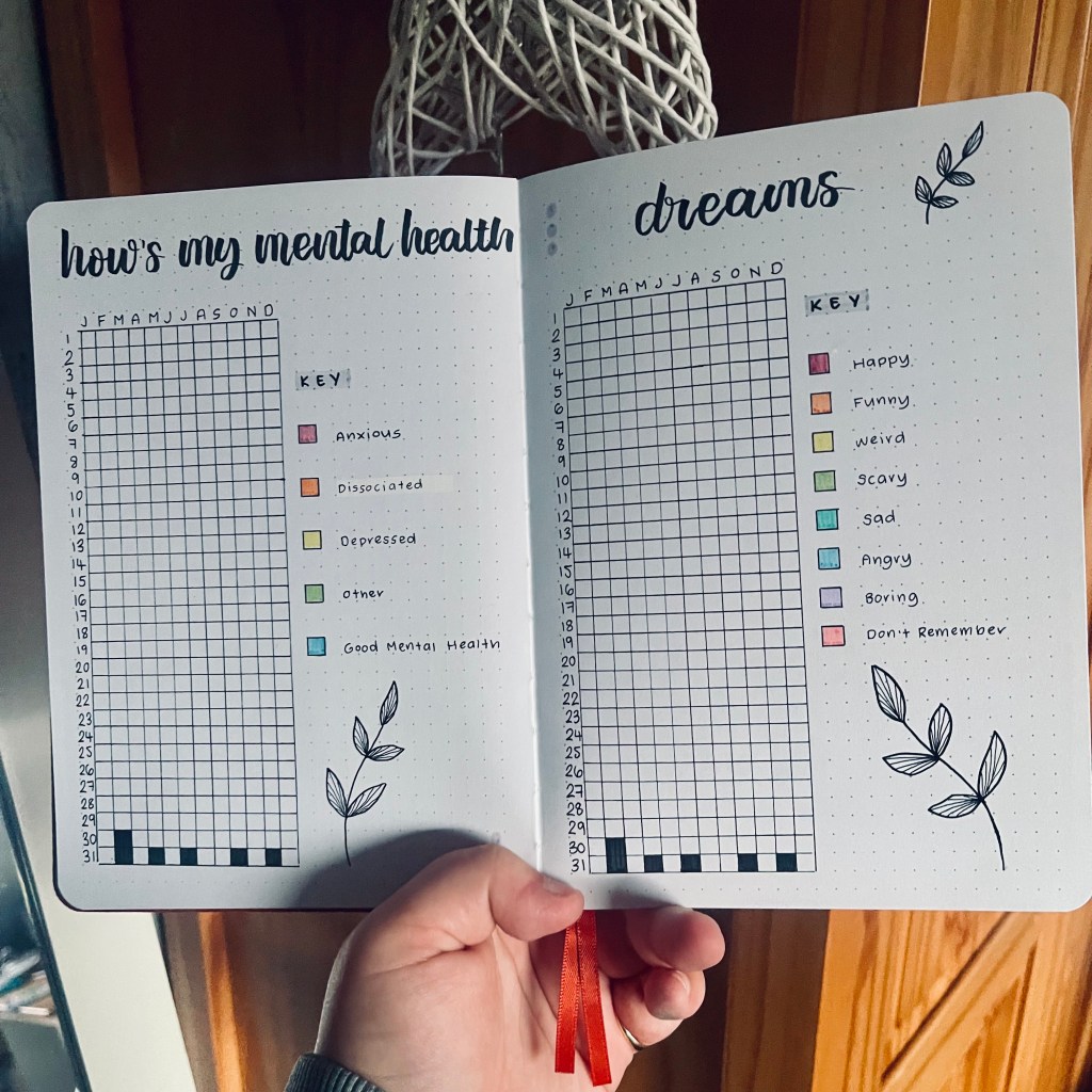I also created a mental health tracker so I could clearly see how my mental health looks over the year. I want to make sure I get a clear understanding of my mental health so I can look at ways of improving it. I also wanted to include a dream tracker like this in my yearly setup. Again, I was heavily inspired by Rubysocial to do this.