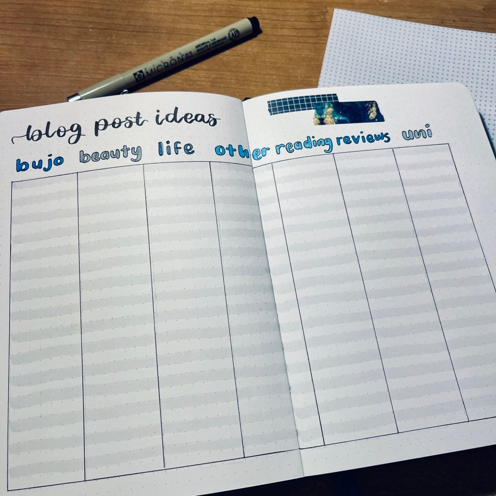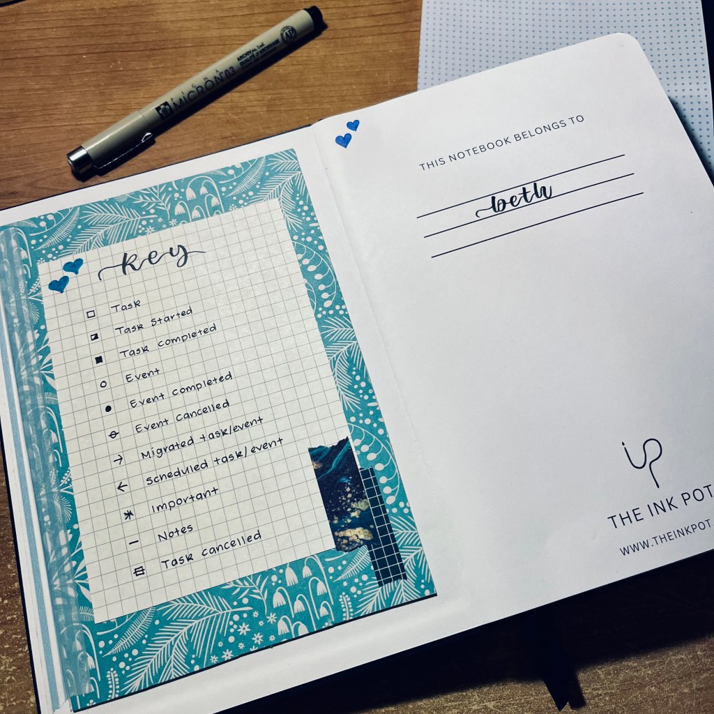 The notebook I am using is a customisable one from the Ink Pot. I have gone for a faux leather one but they also do other types too. I must be clear and say that this notebook was kindly gifted to me by the Ink Pot which I am very grateful for. I have a discount code “BETH10” which gets you 10% off orders over £15. This isn’t an affiliate code so I don’t get any profit or anything like that from it. It’s there though if you would like to use it!