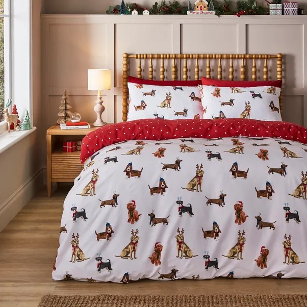 Dunelm Catherine Lansfield Let it Snow Cotton Rich Red Duvet Cover