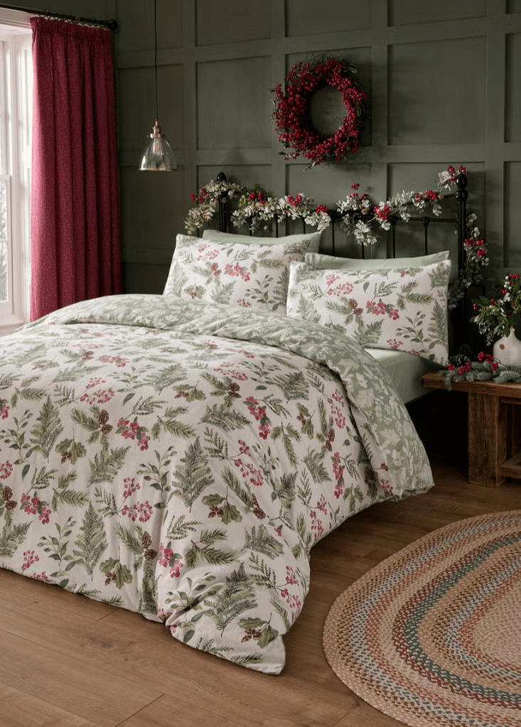 Matalan Dreams & Drapes Lodge Winter Sprigs Christmas Green Duvet Cover