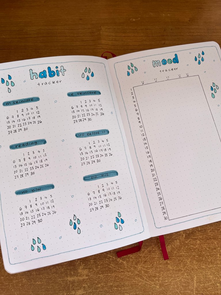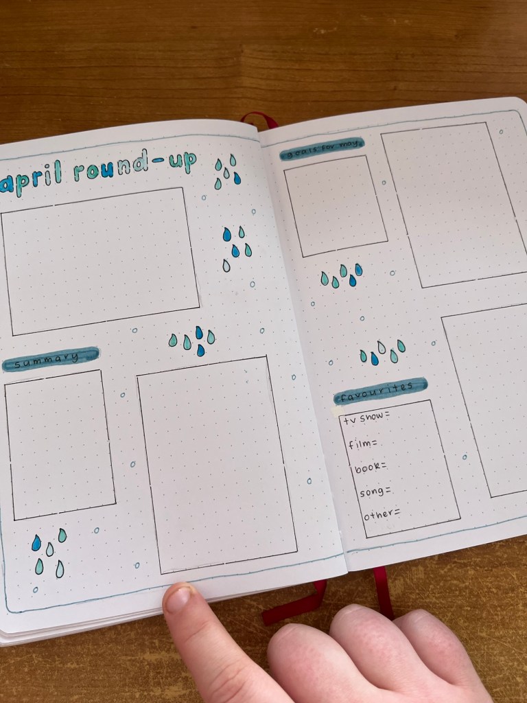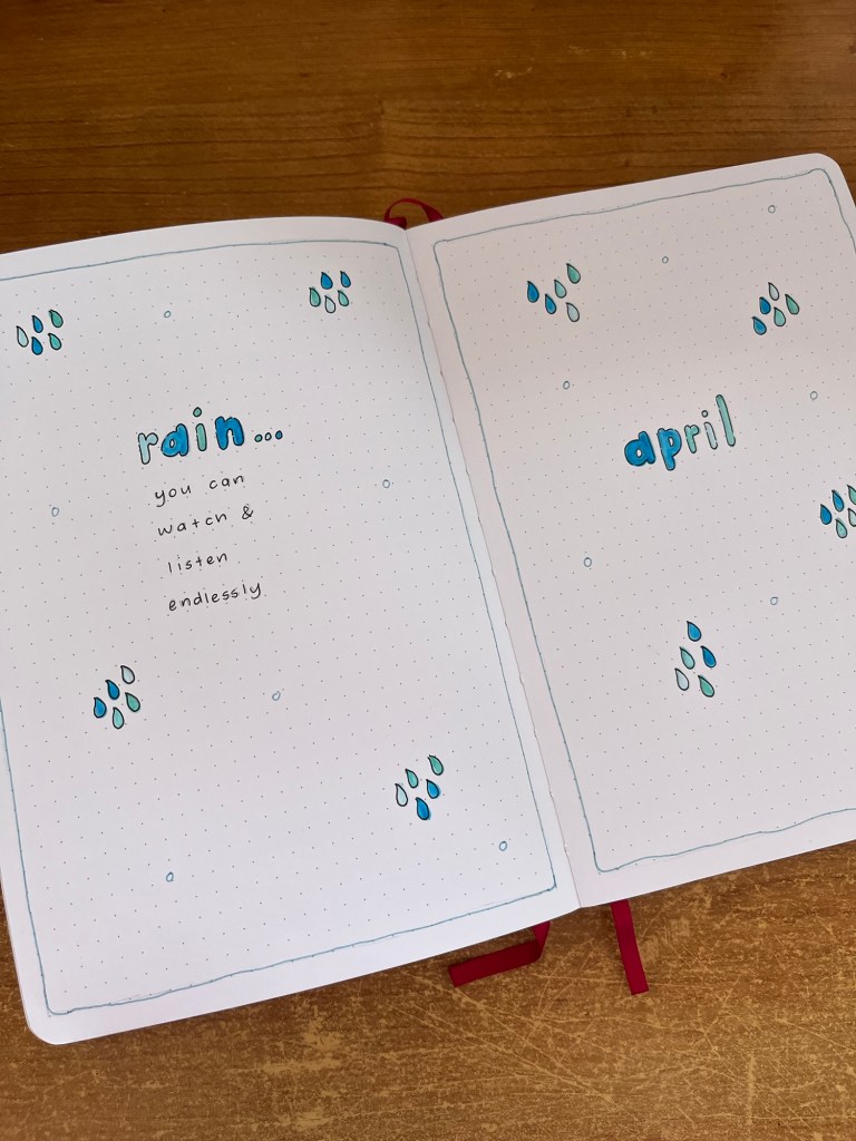 I can’t quite believe it’s April already. 2026 seems to be flying by and I don’t know why. As it’s a new month, it’s obviously time to share my April bullet journal setup. In keeping with the wonderful saying ‘April showers brings May flowers’, I have gone for a rain theme for my theme this month. I have previously done this theme back in 2021 or 2022 I want to say but that was a very simple theme and I wanted to spice things up a little bit.
